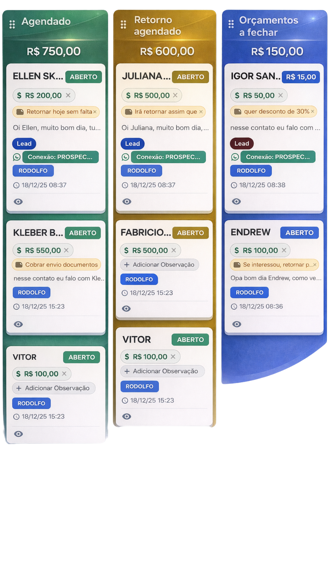 Tudo o que você precisa para trazer organização e atendimento rápido para seus contatos/clientes